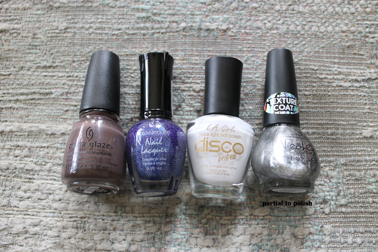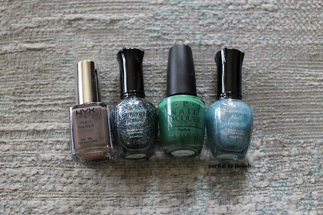 Dollish Polish polishes I recently purchased! Below is the mani I did yesterday with three of the five polishes, their names can be found below. Unfortunately I didn't clean up my nails before I took these pictures, but I think you can hardly tell :).