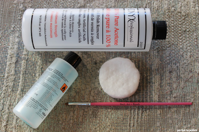 After Polishing: Acetone and Non-acetone Nail Polish Removers, Cotton Pads and Clean Up Brushes
