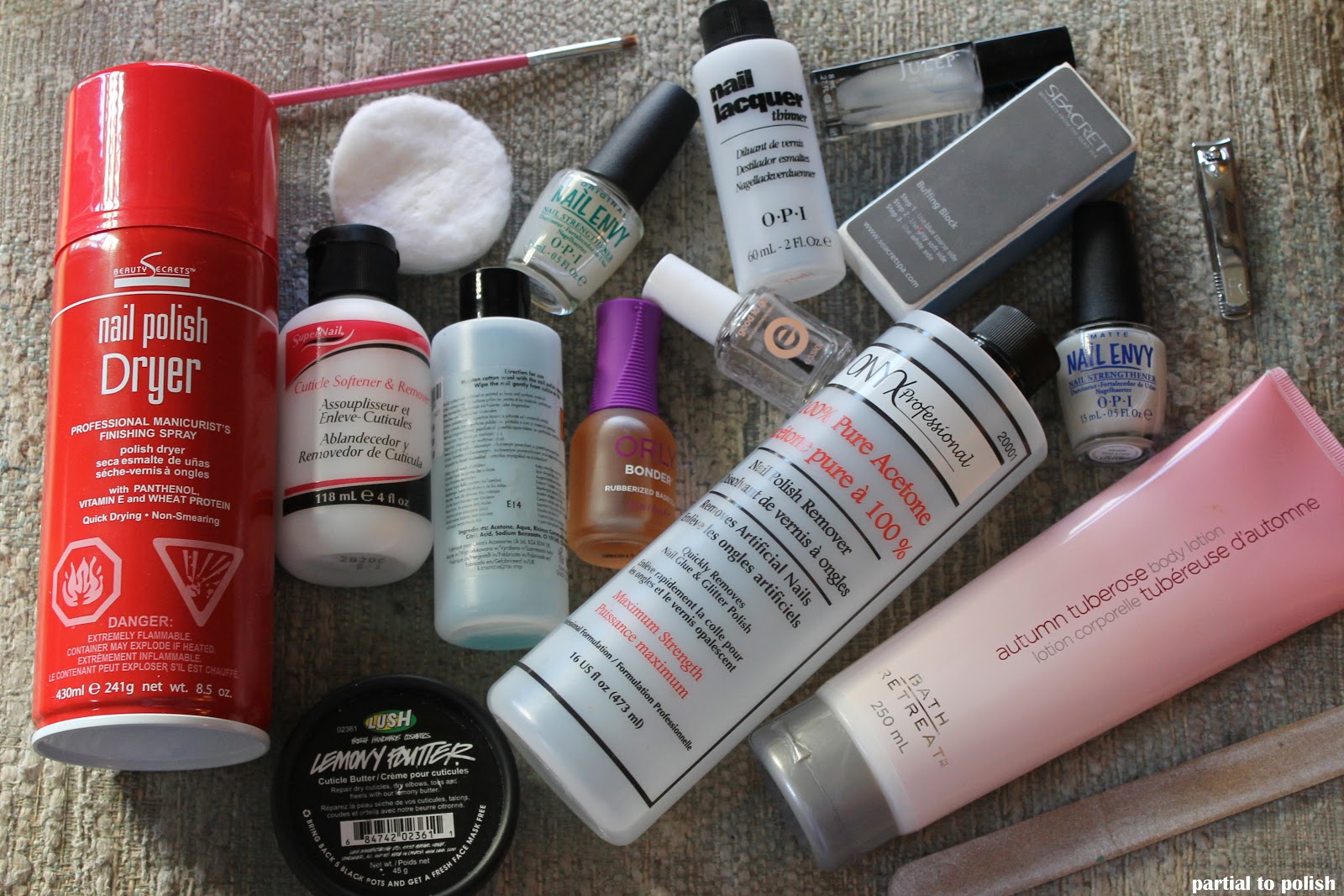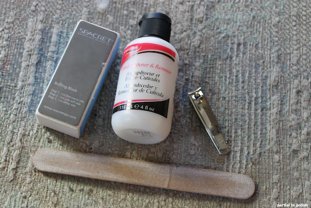 Before Polishing: Buffer Blocks, Cuticle Remover, Nail Clippers and Emery Boards