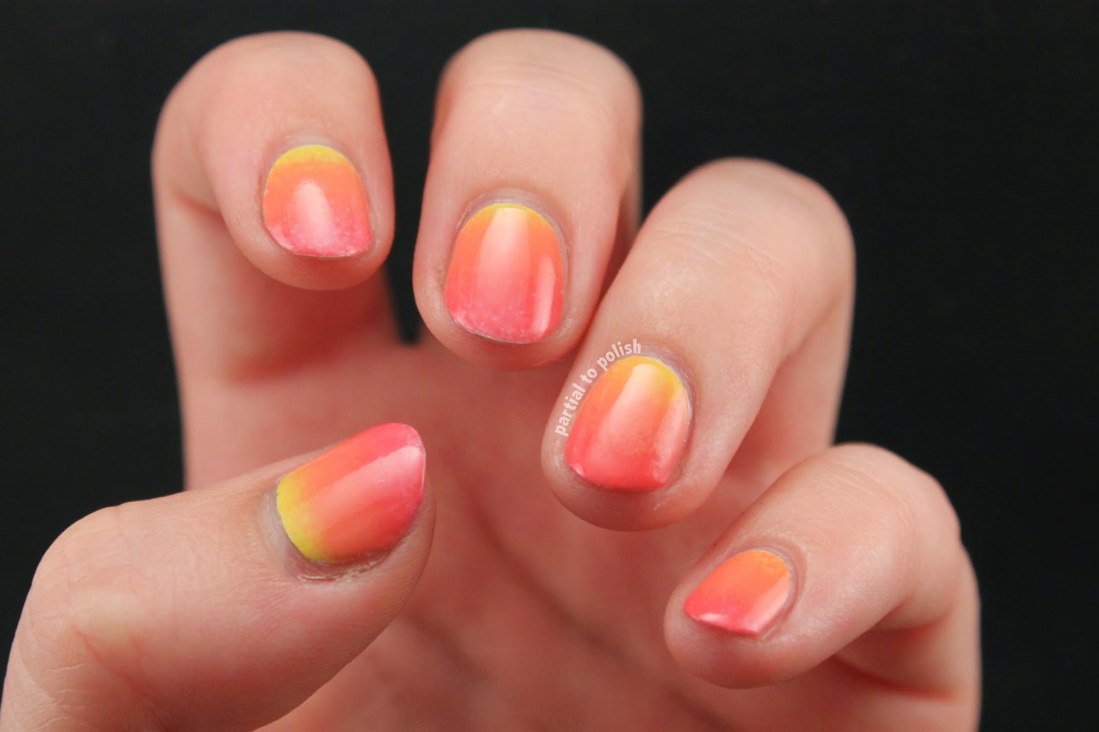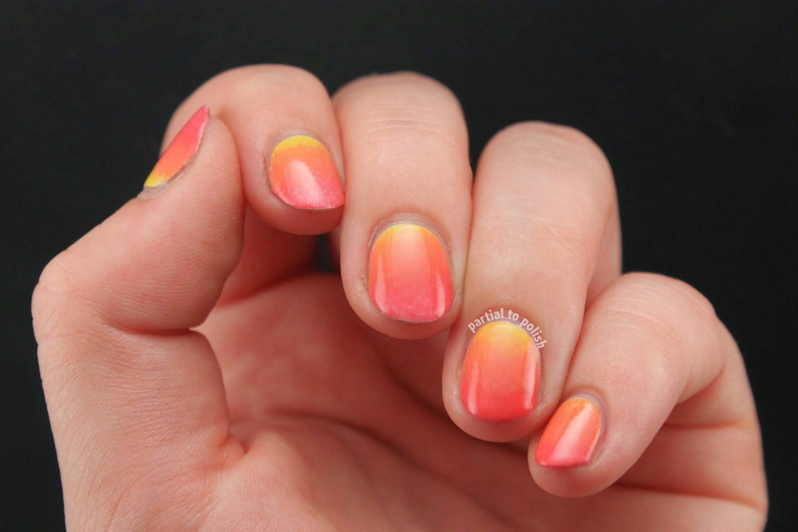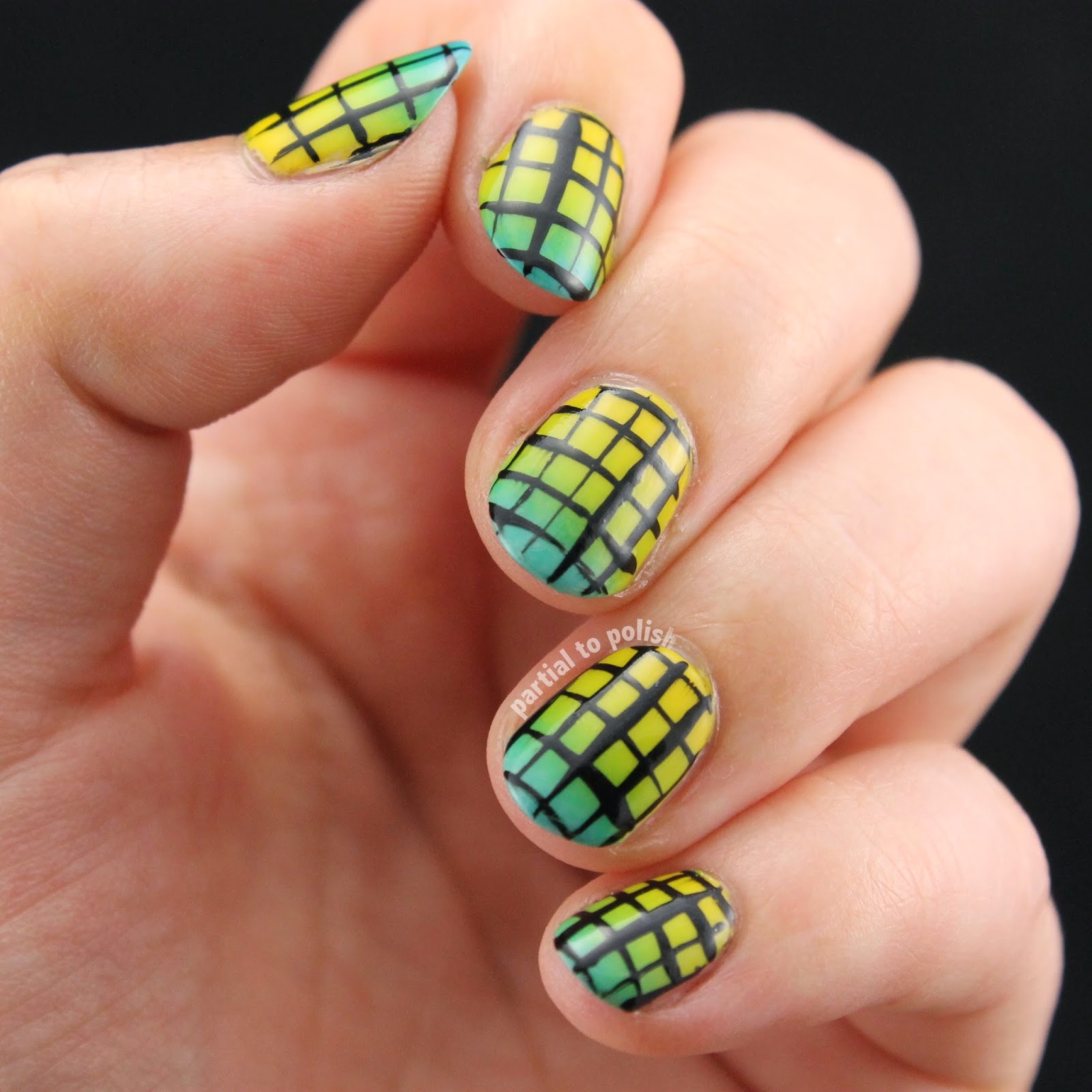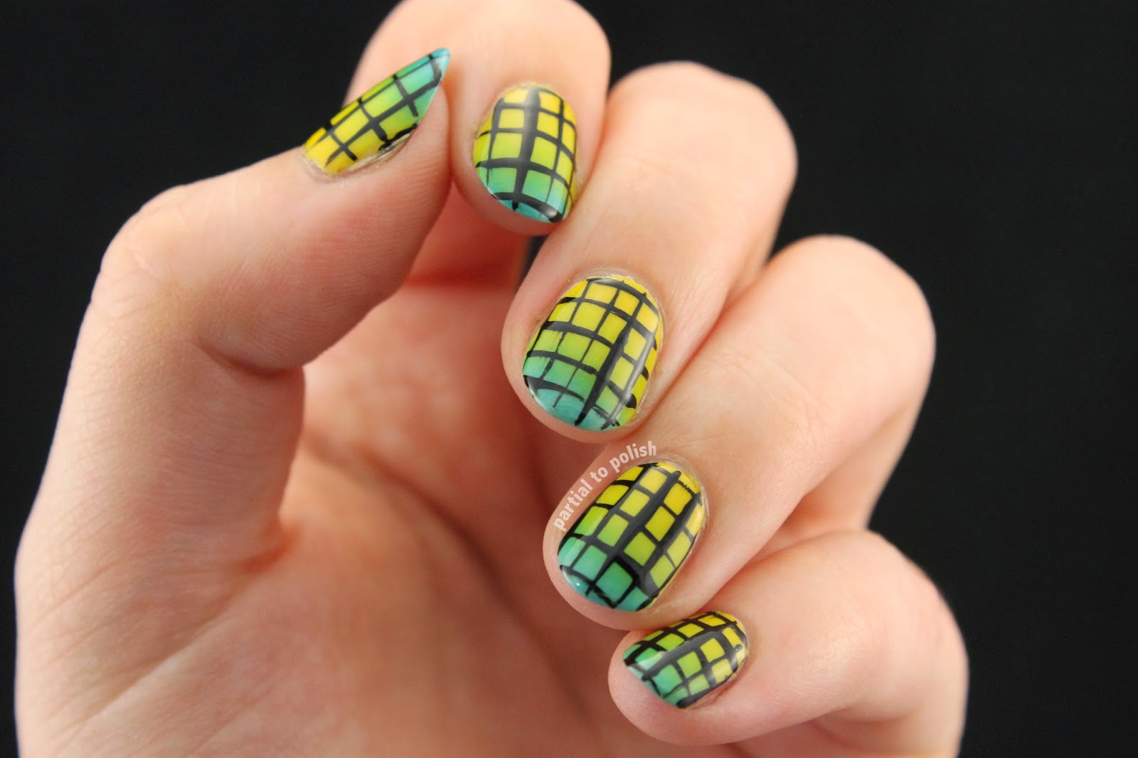 Next, I went in with a damp makeup sponge and American Apparel Sunshine State (yellow), American Apparel Cresent Heights (chartreuse) and China Glaze Wait N Sea (blue)! I sponged on two to three layers to get the opacity I wanted.