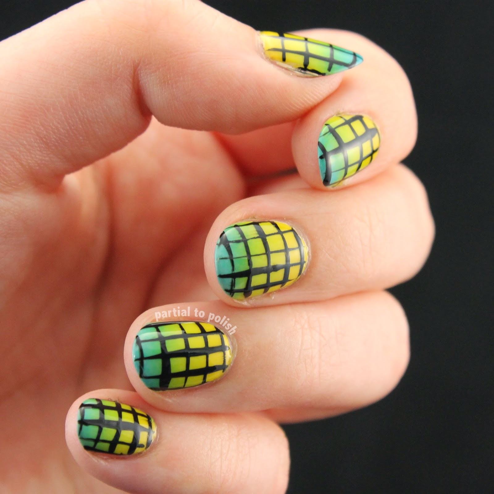 One thick and careful coat of top coat and I was finished! I realized later that these were probably subconsciously inspired by the awesome and hilarious Cynthia of Of Life and Lacquer's chain link fence gradient nails!