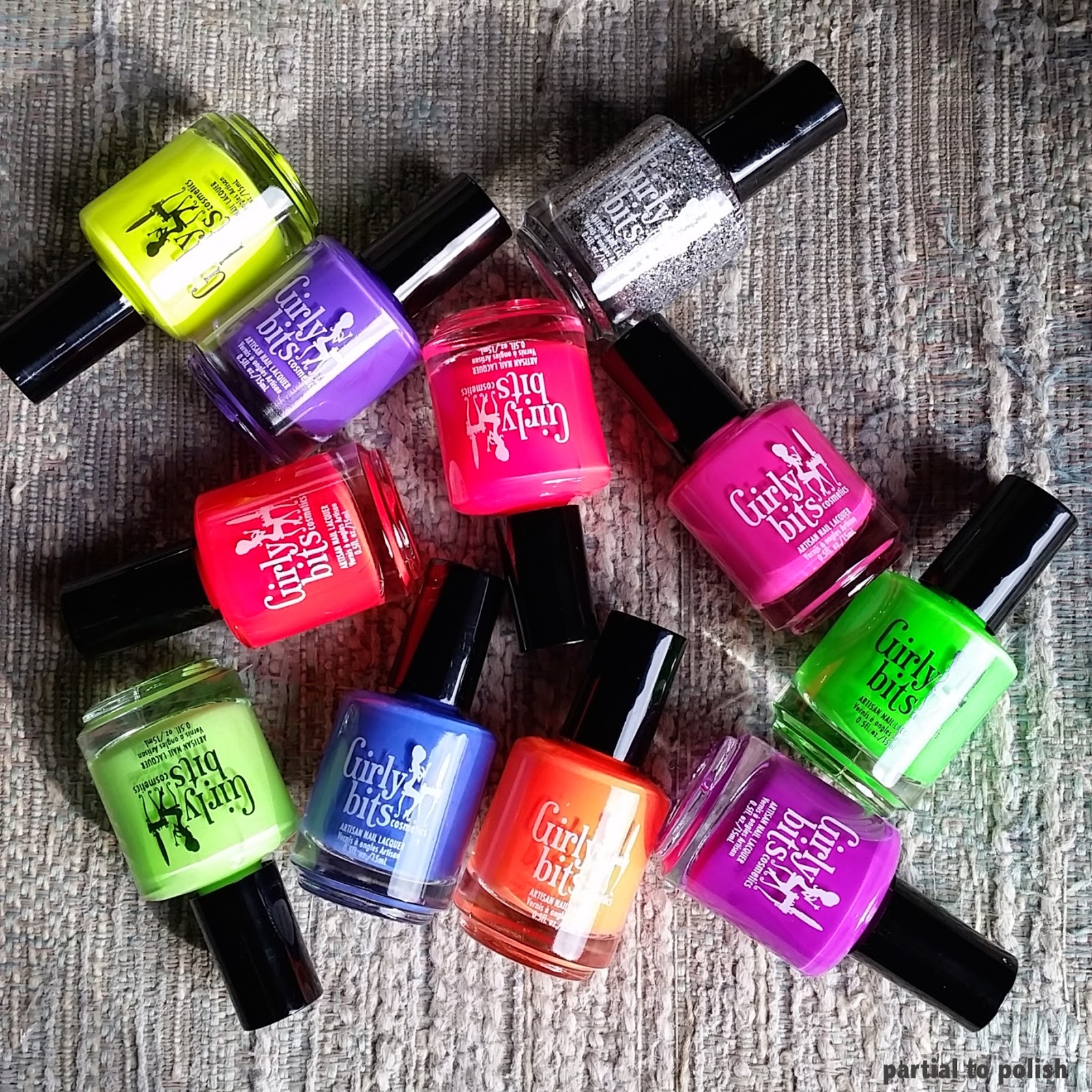 You Spin Me Round. Excuse my peely nail beds in some of the pictures (I really should have just used top coat)! I would describe the polishes as crellies for the most part, though a few are definitely cremes. I'll try to describe their true colours because as we all know, photographing neons accurately is a major challenge!