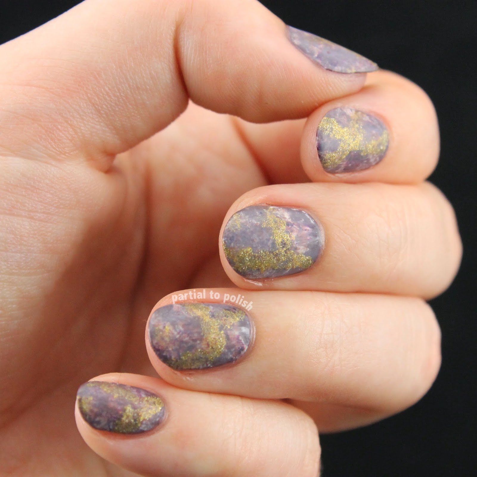 Because I don't have a lot of golds, the only warm one I had was holographic. So I decided to dull that effect (because real gold is not holographic) with a coat of NYC Matte Me Crazy Mattifying Top Coat. After a lot of clean up, I was done!