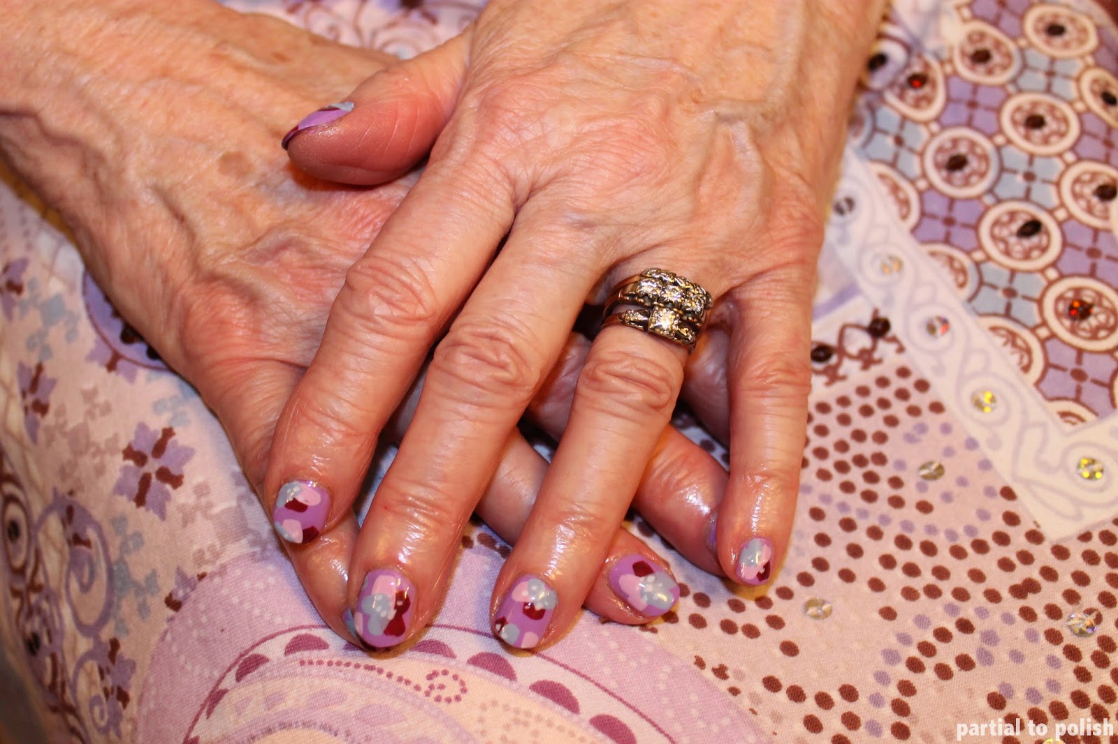 I am in the middle of a few big midterms and lab write-ups so I thought I'd get up a quick post on some nail looks I've done on my grandma for you guys! I love all things nails (obviously) so I really love doing my family or friends' nails while we're having a visit!