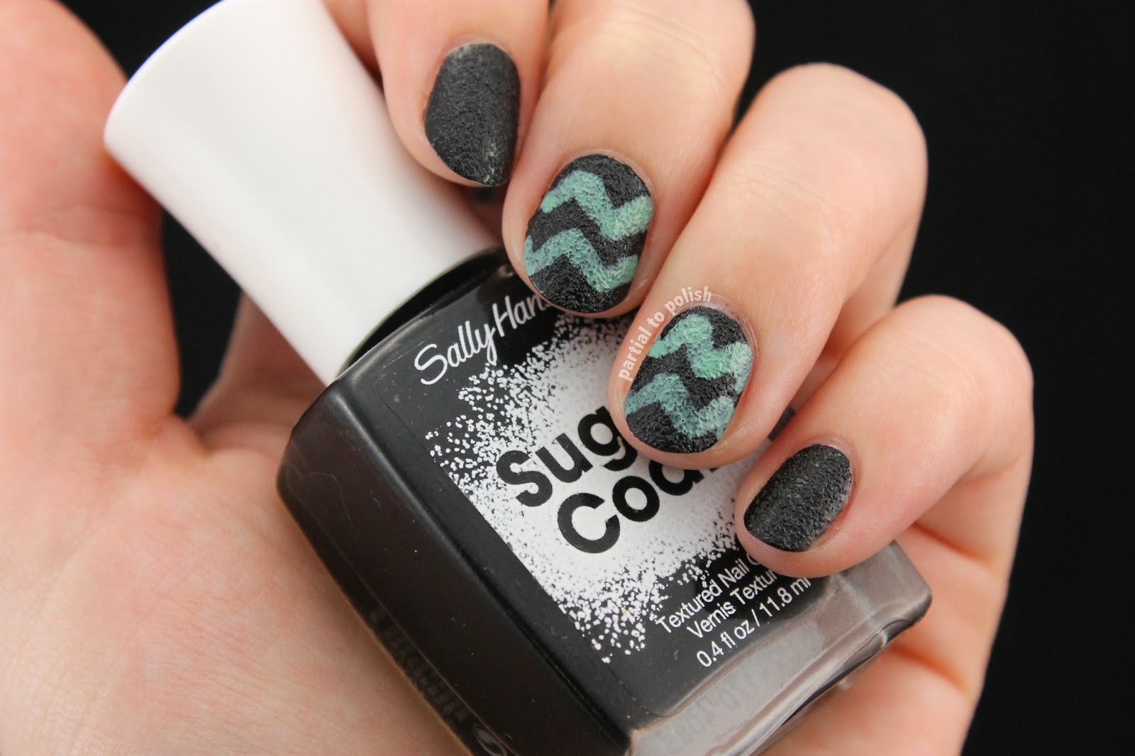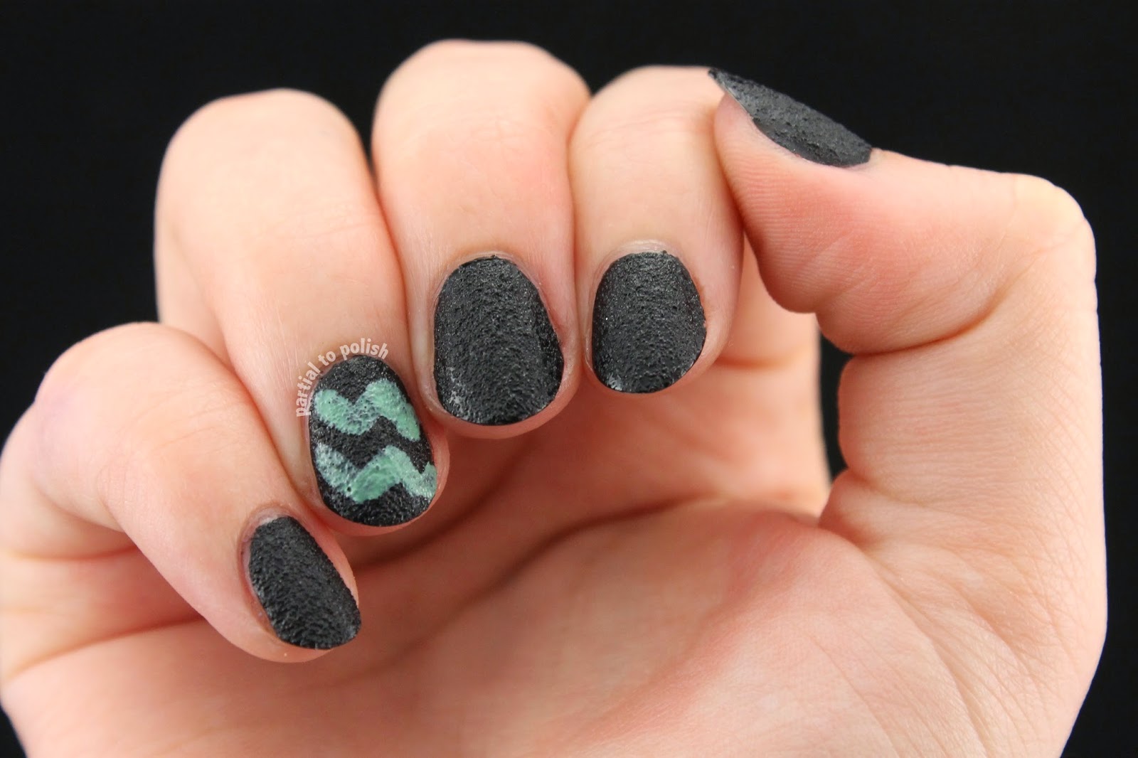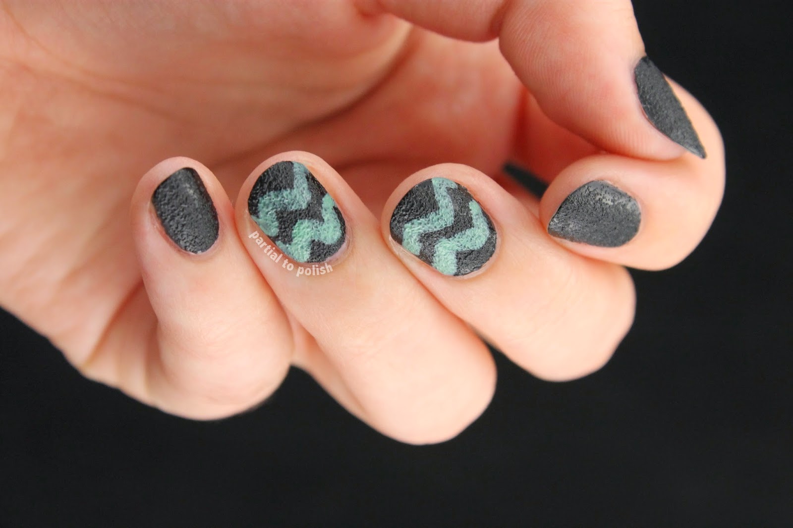 Textured Black Nails with Mint Chevrons Featuring Sally Hansen Lick-O-Rich!